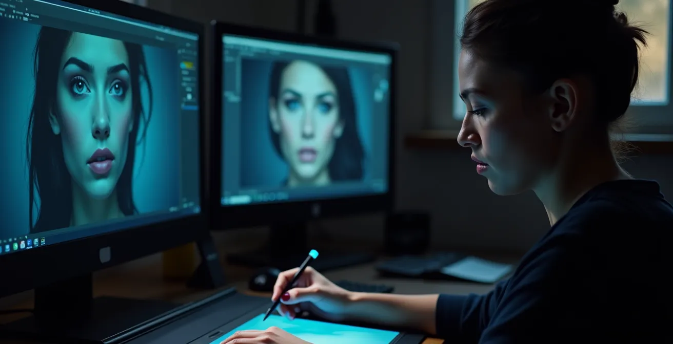 Le secret d’une retouche de peau professionnelle n’est pas de lisser les défauts, mais de sculpter l’image en dissociant la texture des volumes et des couleurs.